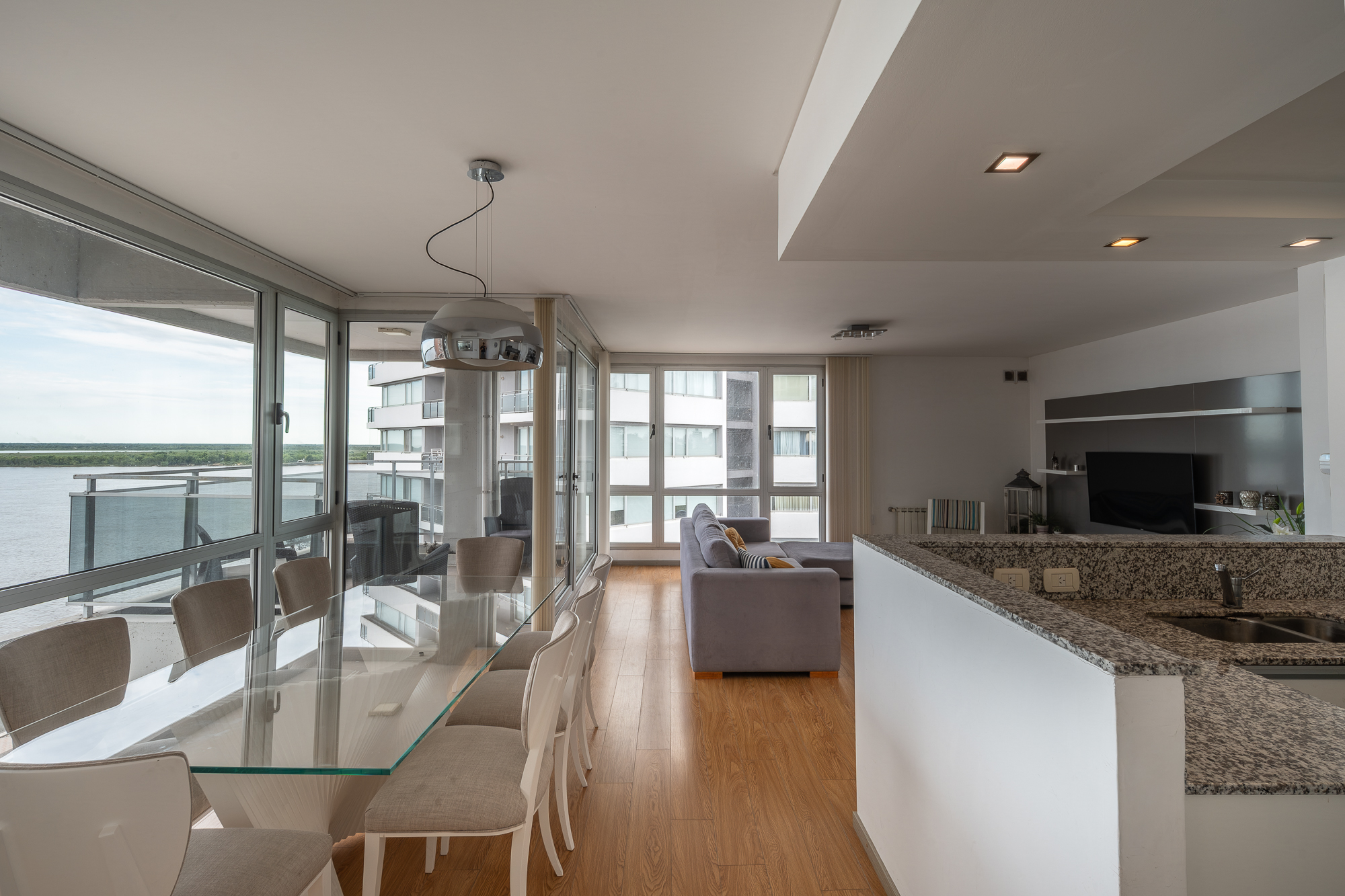 Doble ingreso, el principal hacia el living comedor. Cocina semi integrada. Lavadero sectorizado. Toilette de recepcion. Amplio balcón con vista franca al rio.